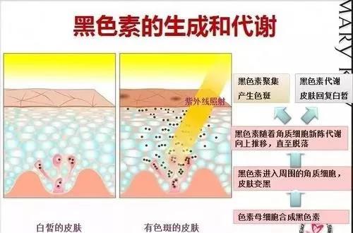 知道斑怎樣形成的嗎?斑跟我們皮膚里的黑色素有關(guān) 。皮膚分為三大層:表皮層、真皮層、皮下組織。在我們的表皮層中又分為五小層,其中第五層有 一個(gè)黑色素母細(xì)胞,當(dāng)紫外線照射到我們的皮膚的時(shí) 候就會(huì)刺激到黑色素母細(xì)胞產(chǎn)生大量的黑色素往皮膚 表層推移,保護(hù)皮膚的,如果黑色素排列均勻,皮膚 看上去就是曬黑了,如果皮膚水分、代謝緩慢,造成色素停留過久,被氧化,當(dāng)過量色素 堆積在皮膚某一點(diǎn),就形成色斑。除了紫外線會(huì)導(dǎo)致 黑色素產(chǎn)生外,遺傳、形成黑色素,形成色斑 。